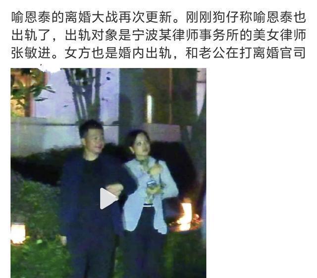而喻恩泰呢?也不是省油的灯。这边妻子出轨实锤还没消化完,那边又被拍到和一位美女律师亲密挽手回家。好巧不巧,这位律师也正在打离婚官司,至于两人是“日久生情”还是“各取所需”,那就不得而知了。